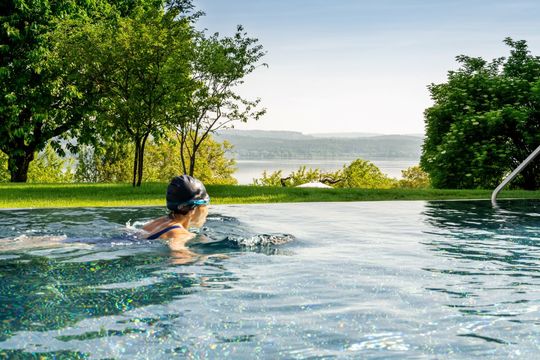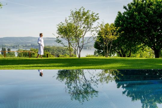 Wärme, Wasser, Weite – ein wunderschöner Dreiklang aus Entspannung empfängt Sie im neugestalteten InselSpa unseres Wellnesshotels am Bodensee. Verschieden temperierte Saunen, teils mit großer Panoramaverglasung und Seeblick, regenerieren Körper und Geist mit wohltuender Wärme. Ein 27 Meter langer beheizter Infinity Pool – davon 11 Meter geschützt Indoor und 16 Meter unter freiem Himmel – lädt Sie ein, sich einfach mal treiben zu lassen oder ausgiebig ein paar Bahnen zu schwimmen. In zahlreichen Ruheräumen und im blumengesäumten Inselgarten finden Ihre Gedanken den nötigen Freiraum, um Alltag und Arbeit zu vergessen. Immer im Blick: der malerische Bodensee und seine jahreszeitengeschmückte Naturkulisse.