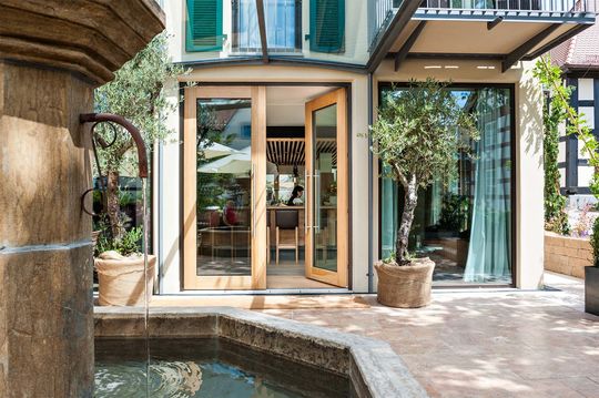 HAUS VERENA, HAUS SEEBLICK, VILLA MARIA, HISTORISCHES GASTHAUS sowie Ferienhaus VILLA NINA heißen die Residenzen des Hotel Hirschen, die sich alle nebeneinander an den äußersten Zipfel der Halbinsel Höri am Bodensee schmiegen. Direkt angrenzend an das unberührte Naturreservat mit Seeblick und bei klarem Wetter auch Alpensicht. Die Häuser liegen ruhig und exquisit in direkter Nähe zum Bodensee, umgeben vom Inselgarten des Hirschen, kraftspendende Oase und natürlicher, einzigartiger Rückzugsort für unsere Gäste. Die Häuser beherbergen unsere Suiten, Zimmer und die Ferienwohnungen und sind behaglich, behutsam, mit Blick auf liebevolle Details eingerichtet. Alle Häuser - bis auf das historische Gasthaus- sind miteinander verbunden und bieten direkten Anschluss an den Wellnessbereich.